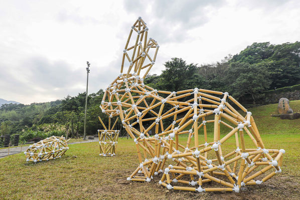 靈動長耳、身姿輕盈的鏤空兔子倚立法鼓山園地,如信使引領福慧座落,隱身在來迎觀音公園叢樹、草原之際,裝置內部的燈光,穿透竹構輪廓散發光亮,在夜幕低垂亮起智慧心燈。