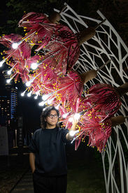 In this creation, artist Ching-Ke Lin once again uses his signature bamboo weaving technique to bring the image of the Taiwan cherry blossom to life. Beneath the soft smiles of these delicate blooms, the gloom disperses, and hearts are filled with light, guiding people forward on their journey toward happiness.