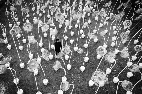 藝術家林靖格呼應全聯基金會「2021 謝謝感恩節」公益嘉年華之核心精神,以編織工藝將竹材堅韌、耐久的特性轉化為溫暖、柔美的花型,一朵朵、一株株竹編的花苞和花朵,是在手中傳遞敬謝與感恩的謝籃,也是喚起眾人在動盪的大環境中謙卑垂首並獻上讚美的大型風景。